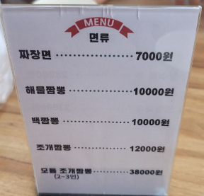 메뉴 사진 입니다. 짬뽕 종류가 총3가지 입니다. 저는 일반 해물짬뽕을, 집사람은 백짬뽕을 주문했습니다.