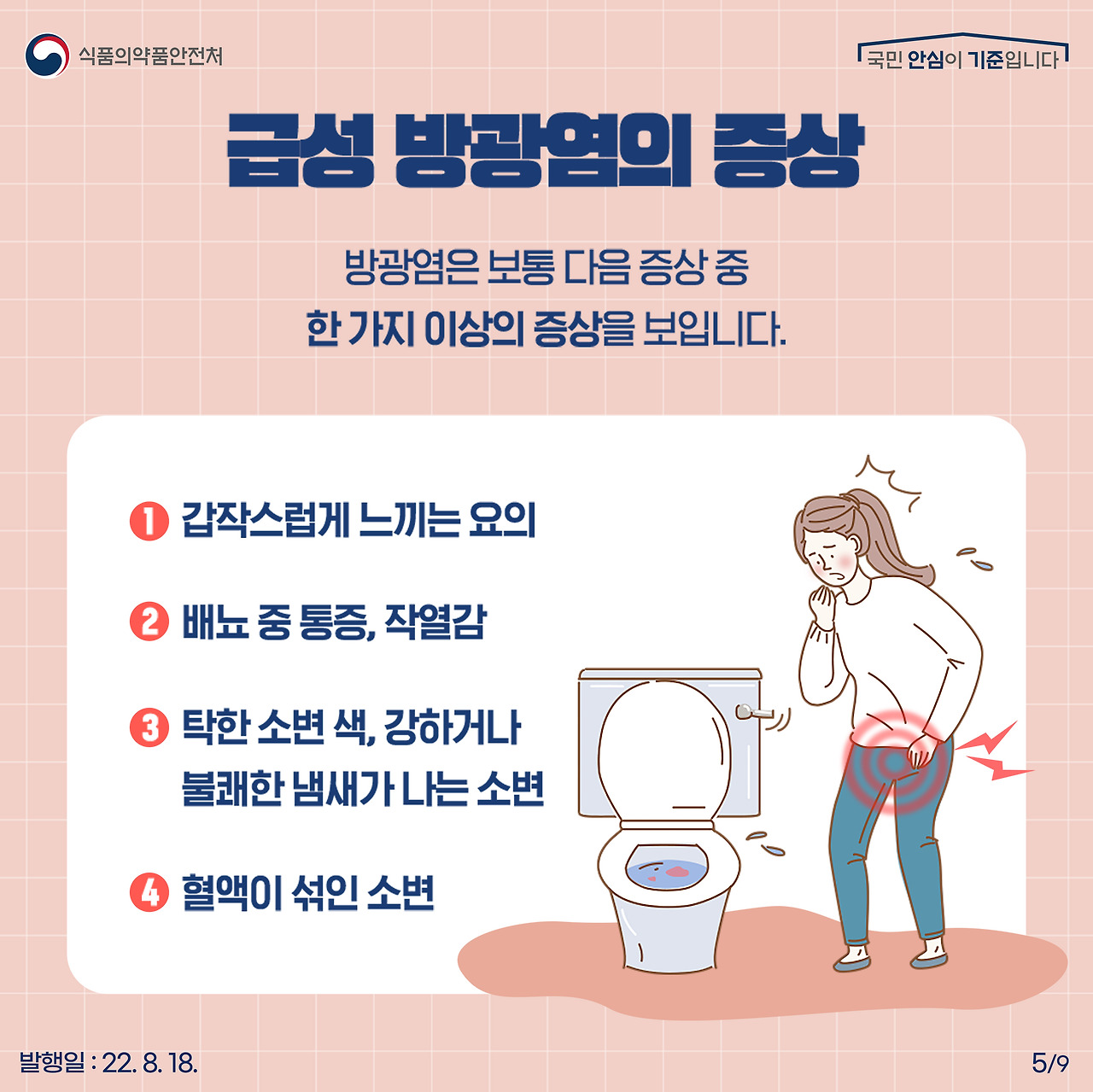방광염은 방광에 염증이 생기는 질환이야. 주로 세균 감염으로 발생하는데, 특히 여성에게서 더 흔하게 나타나. 방광염이 생기면 소변을 자주 보고 싶고, 아프고, 불편한 증상이 나타나. 이럴 때는 빨리 치료를 받아야 해.