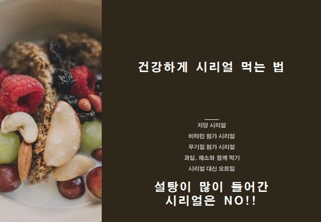 “시리얼을 먹을 때 시리얼의 양이 너무 많지 않도록 주의해야하며 식사량이 부족할 경우 과일이나 채소를 더 먹을것 권장한다” “최근에는 다양한 비타민이나 무기질을 첨가한 시리얼이 많아 이러한 제품을 선택하는 것도 좋다” “일반 시리얼이 아닌 오트밀을 우유에 타서 끓여 먹으면 시리얼보다 칼로리는 낮고 포만감 있게 먹을 수 있다”